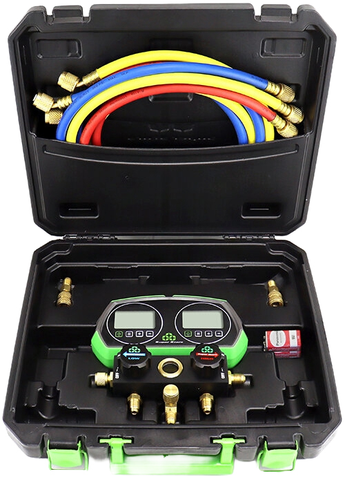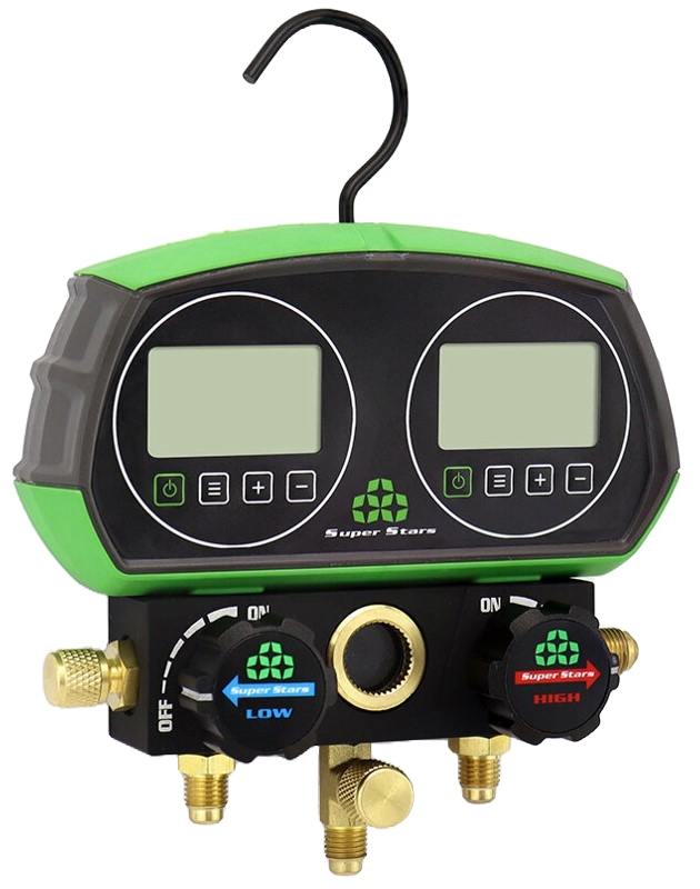 Analizador digital de 2 válvulas antichoque SUPER STARS ST-B268D con mangueras y 90 refrigerantes incluídos
