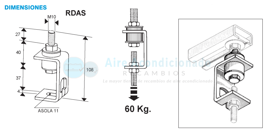 Antivibrador de techo con regulador de altura RDAS-60