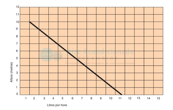 • Caudal de agua: 14 l/hora a 0 metros.