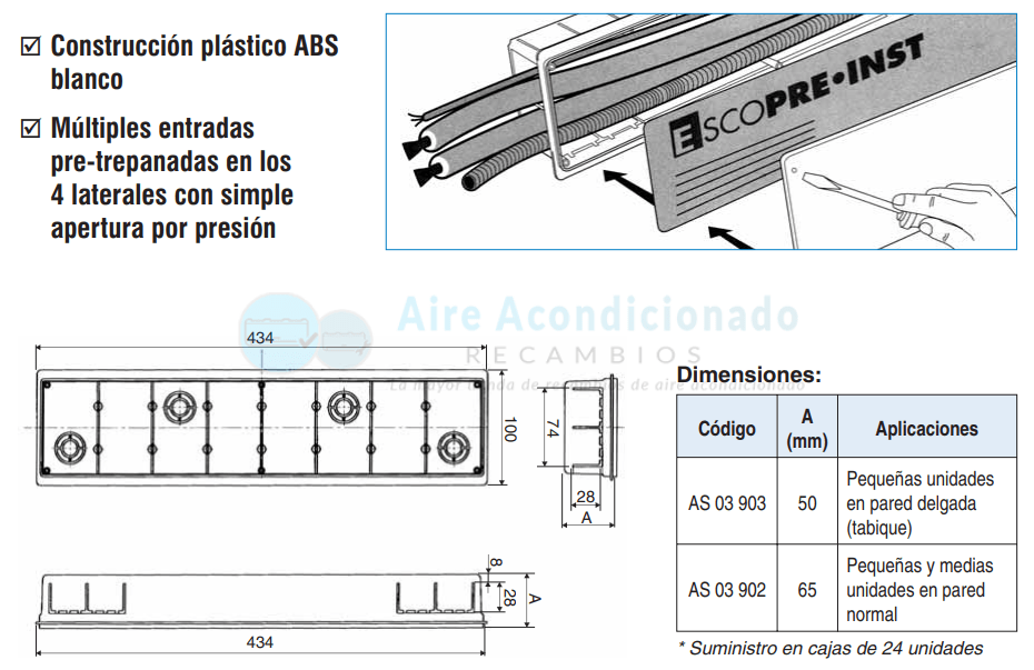 CAJA DE PRE-INSTALACIÓN de aire acondicionado 392 x 134 x 55