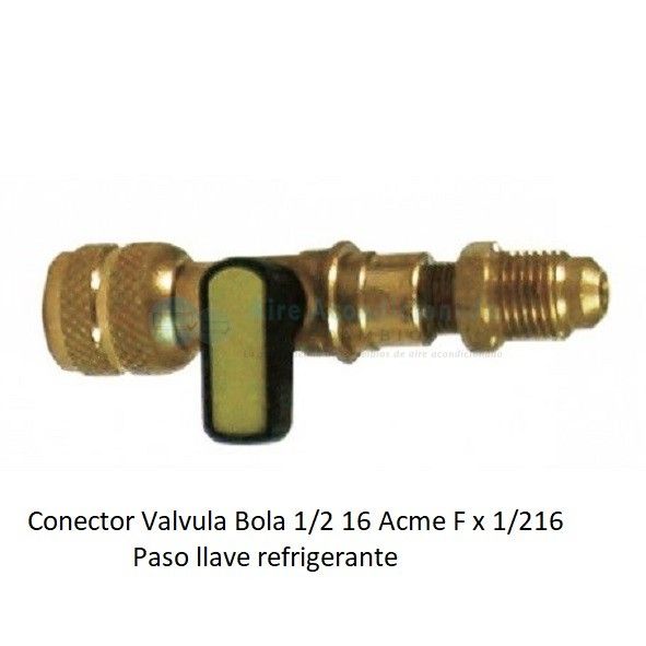 Conector válvula bola 1/2″ 16 Acme F x 1/2″ paso de llave refrigerante.