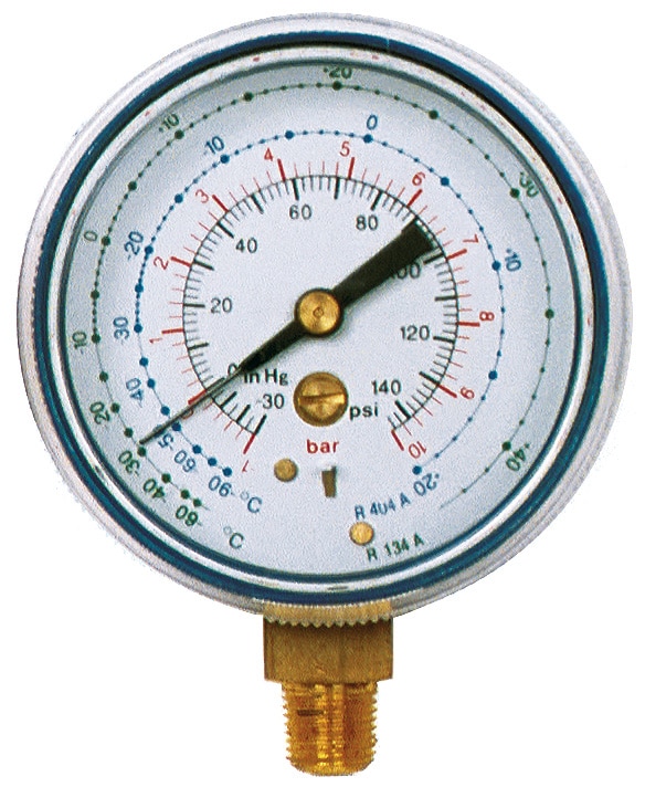 Manómetro vertical baja de 1/8″ NPT para R134a y R404A Ø63mm