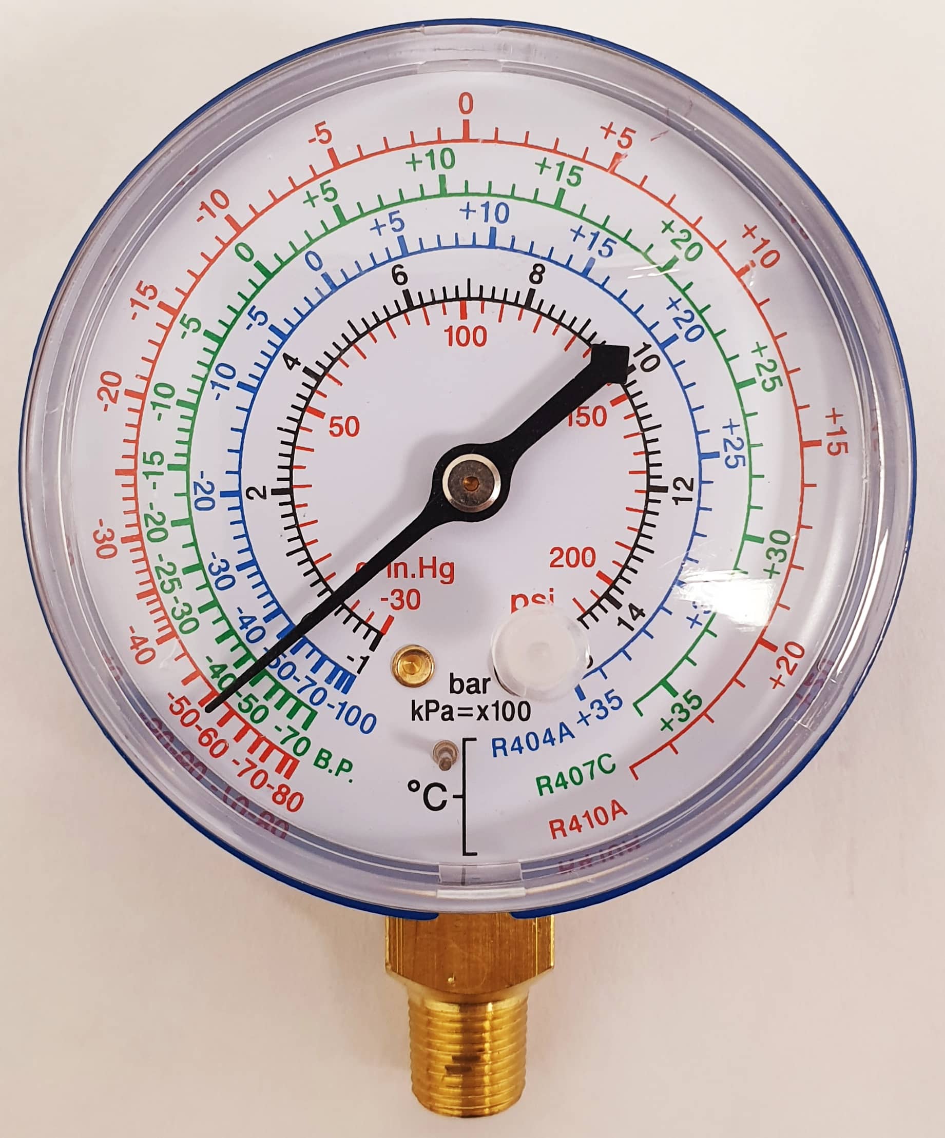 Manómetro vertical de baja presión 1/8″ NPT para R410A Ø63mm