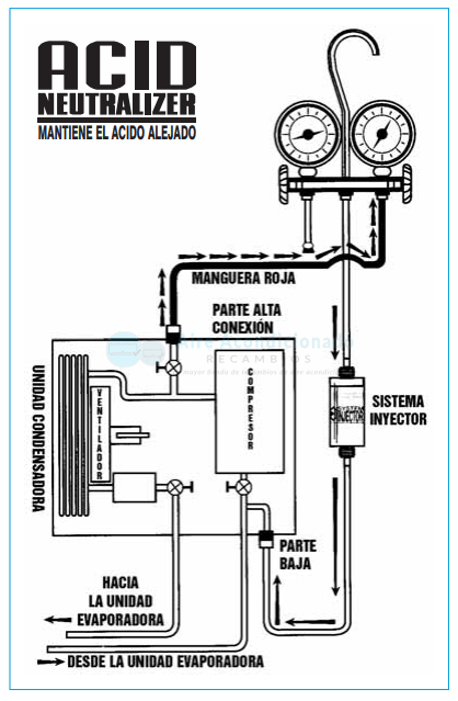 bomba de aceite para añadir la cantidad adecuada de Acid Neutralizer en la zona de alta presión del sistema (tubería de líquido).