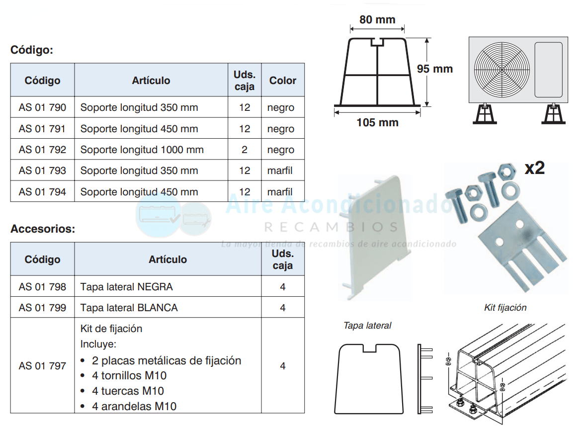 • Bolsa de fijación de unidad incluida con: