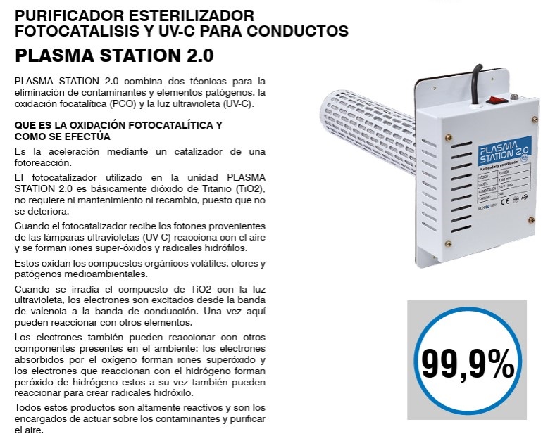 Purificador MUNDOCLIMA UV fotocatalísis PLASMA STATION 2.0